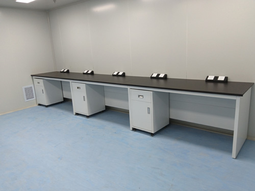 3.行動背板:中臺中心(柜身正反面)為測量儀器側壁,木柜子后側有可聯通檔板,用來存在從地上預埋或吊頂板導入工作柱到測量儀器面板的電、氣蒸汽管道,可在不要用所以方法的的情況下進來維護出入口。